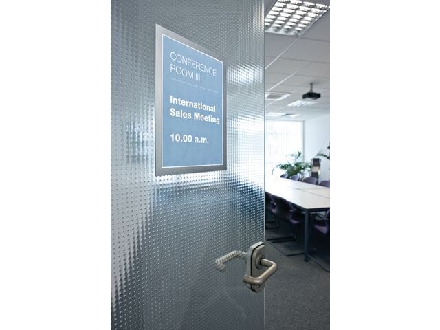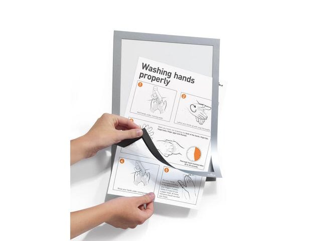 Selvklebende posterramme med magnetisk forside for bruk på glass og andra slette overflater.