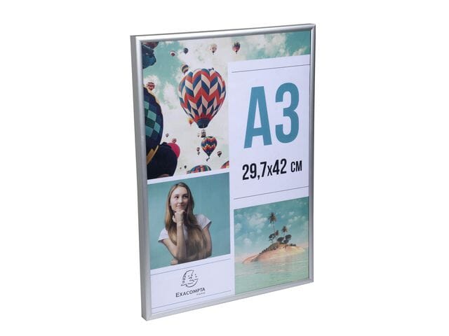 Rammen åpnes forfra ved å løfte de brede skrå aluminiumskantene for enkelt plakatskifte. Den antireflekterende skjermen gjør at skiltet kan ses perfekt fra alle vinkler, uten å bli skjult. Den festes enkelt til veggen ved hjelp av skruene som følger med. Du kan enkelt lage dine personlige skilt i riktig størrelse med KREAMAN på www.exacompta.com