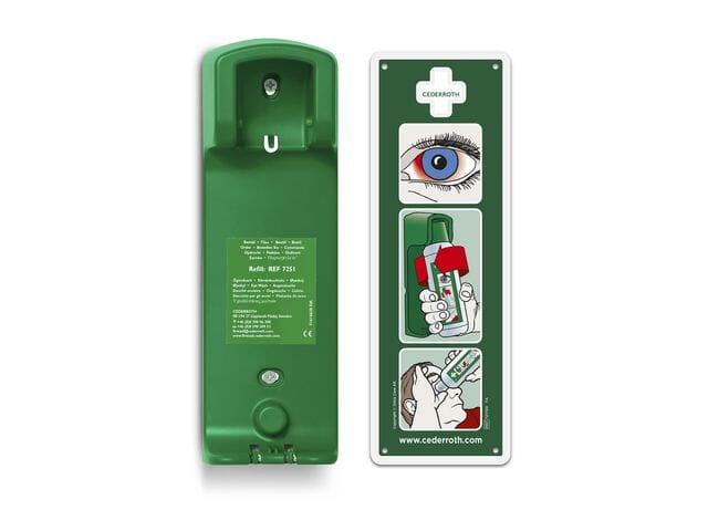 Robust og praktisk veggholder til Cederroth Øyedusj 500 ml. Med veggholderen får flasken en bestemt plass slik at alle vet hvor den finnes. Flasken sitter fast i veggholderen og åpnes automatisk når den vris ut av holderen – øyeskyllingen kan starte øyeblikkelig.