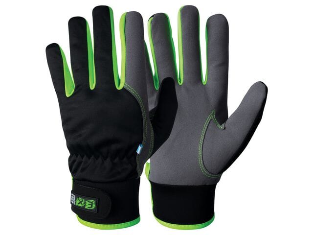 Monteringshansker MacroSkin Pro med elastisk polyesterhåndbak og borrelås.