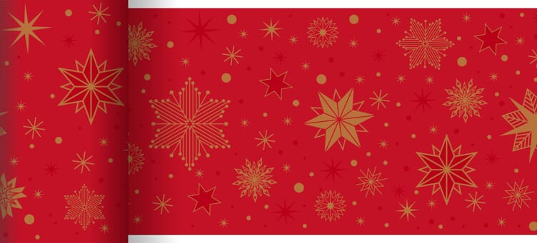 Smal bordløper i Dunicelkvalitet med juledesign. Løperen er 15cm bred og det er 20meter på rullen.