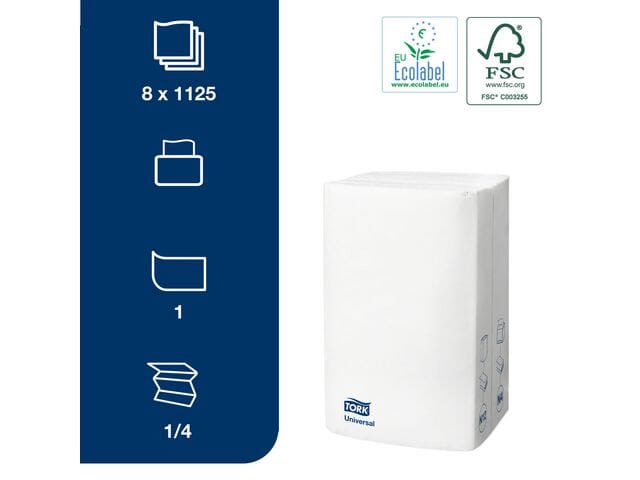Tork Xpressnap ultramyke servietter til dispensere er et produkt av høy kvalitet som passer godt til alle typer bord. Disse 1-lags serviettene er laget av resirkulerbart materiale og leveres i pakker med 1125 servietter.