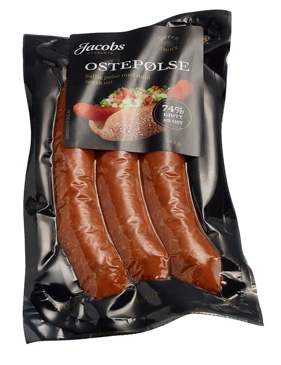 Ostepølse med vellagret norsk ost. Høy kjøttandel