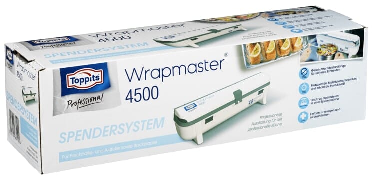 Wrapmaster 4500 er en 45cm dispenser og er det perfekte valg for storkjøkken som bruker store mengder plastfolie, aluminiumfolie eller bakepapir. Den kan enkelt desinfiseres i en oppvaskmaskin.