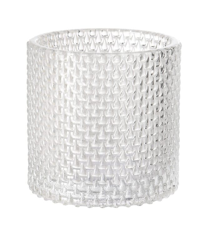 Calm lysholder i glass, for telys og Switch Shine refill. Kan vaskes. Strukturen i glasset gjør at det blir et vakkert lysspill.