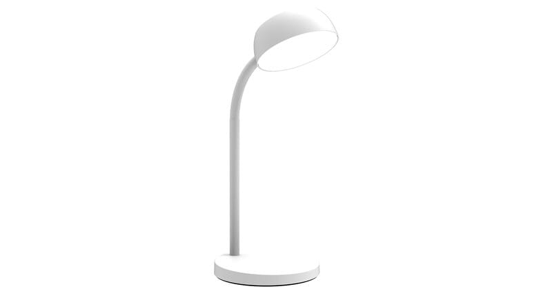Lampe som kombinerer nøkternhet og modernitet, formen på hodet gir bred lysspredning på arbeidsområdet.