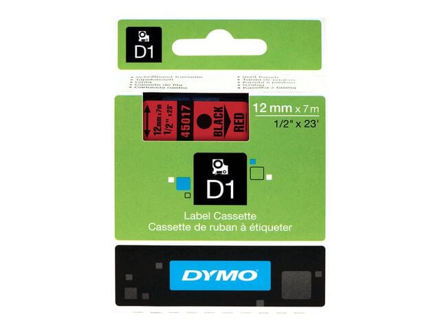 DYMO® D1-etikettkassetten på 12 mm gir stilige, tilpassede etiketter i svart og rødt. Velegnet både for innendørs og utendørs bruk. D1-teipene viser tekst som skrives ut ved hjelp av varmeoverføringsteknologi, noe som fjerner behovet for blekk og toner. Hver etikett er slitesterk og varig siden de er vannbestandige, UV-bestandige og temperaturbestandige mellom –18 grader og 90 grader. De kleber på nesten alle jevne og rene overflater, inkludert plast, papir, metall, tre og glass. Den selvklebende polyesterteipen kan også fjernes for korttidsmerking uten å legge igjen limrester.