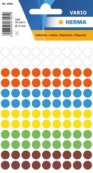 ETIKETT HERMA Ø 8MM ASS FARGER VARIO (540)