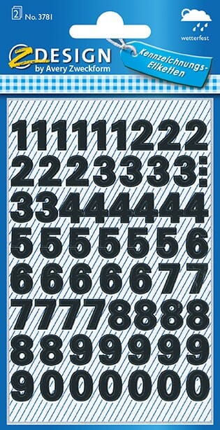 Averys selvklebende tall er den perfekte løsningen når du trenger å nummerere utendørs, f.eks. på postkassen, eller i omgivelser med svingende temperaturer. Tallene er permanent klebende. Farge: sort. Pakke med tallene 0-9. Format: 9,5 mm / 38pt.