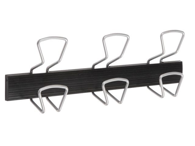 elegant veggmontert knaggrekke for klær i metall. Med tre store kleshengere støtter den opptil 30 kg. Enkel montering med kun to skruer, og avrundede ender skåner klærne.