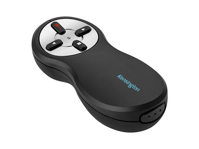 Denne trådløse Kensington-presentasjonsenheten med rød laser er lett og brukervennlig. Et effektivt presentasjonsverktøy. Presentasjonsenheten har en trådløs rekkevidde på 20 meter og er ergonomisk utformet med enkel knappbetjening. Den trådløse USB-mottakeren kan oppbevares inni enheten når den ikke er i bruk. Den deaktiverer også batteriet for å spare batteristrøm når enheten ikke er i bruk. Plug-and-play-teknologien gjør det raskt og enkelt å ta i bruk presentasjonsenheten. - Ergonomisk utforming med knapper for laser, fremover, bakover og sort skjerm - 2,4 GHz trådløs USB-mottaker som kan oppbevares inni presentasjonsenheten når den ikke er i bruk - Batteriet deaktiveres når USB-mottakeren er plassert i presentasjonsenheten, for å spare batteristrøm - Skarp rød laser ved presentasjon - For bruk med PowerPoint® og Keynote® - 20 meter trådløs rekkevidde - USB plug-and-play uten behov for drivere - Kompatibel med både PC og Mac® - Drives av to AAA-batterier (medfølger) - Indikator for batteristatus - Kan brukes med operativsystemene Windows® Vista, Windows® 7, Windows® 8, Windows® XP og Mac®