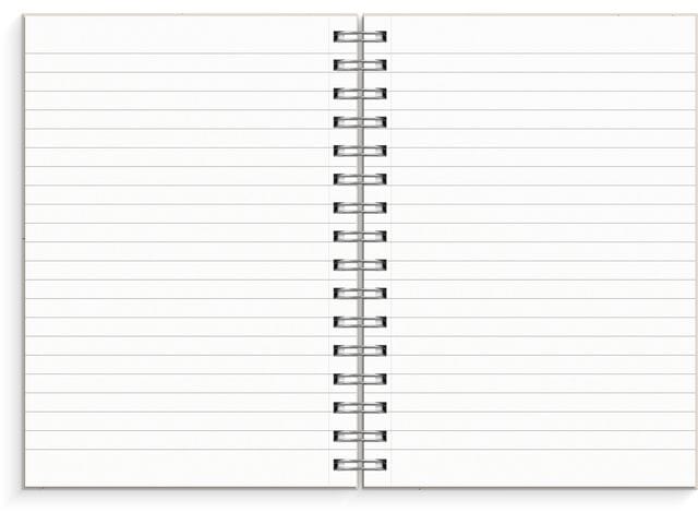 Skrivebok med omslag i kartong med sølv spiral. - Format: A5 - Farge: krem/beige - Linjert: ja - Vekt: 70g - Antall ark: 150 - Antall sider: 300 - FSC®