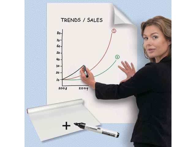 Legamaster Magic-Chart Whiteboard er et hvitt elektrostatisk skriveark som du kan bruke til å presentere ideer i enhver situasjon.