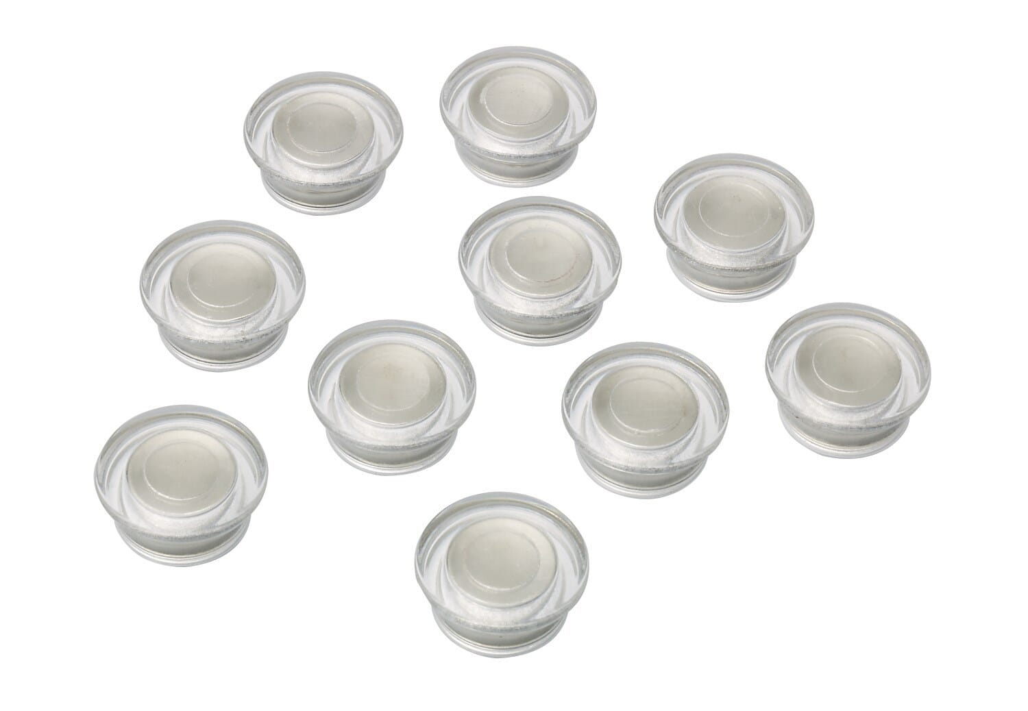 Nobo ekstra sterke 32 mm magneter for glasstavler, 10 pakning. Disse stilige runde gjennomsiktige sterke magnetene er spesielt utviklet for bruk på magnetiske glassoverflater, egnet for å henge opp notater eller beskjeder på en magnetisk whiteboard glasstavle. En magnet kan holde opptil 6 stk. 80g A4-ark. ADVARSEL: Dette produktet inneholder magneter med høy styrke. Magnetene er ikke leker og bør holdes unna barn. Hold magneter unna medisinsk utstyr for å forhindre forstyrrelser.
