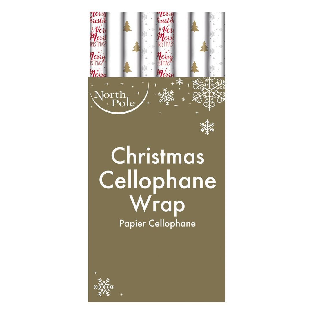 Gavepapir i cellofan. Kommer i tre assorterte design/julemotiv og en nøytral.