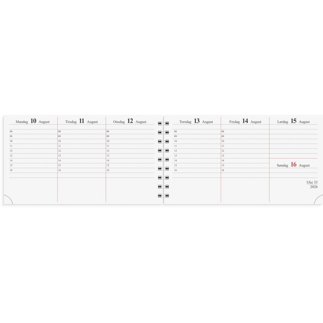 Kombikalender uke er en spiralisert bordkalender med ukeoppslag - hele uken over to sider.