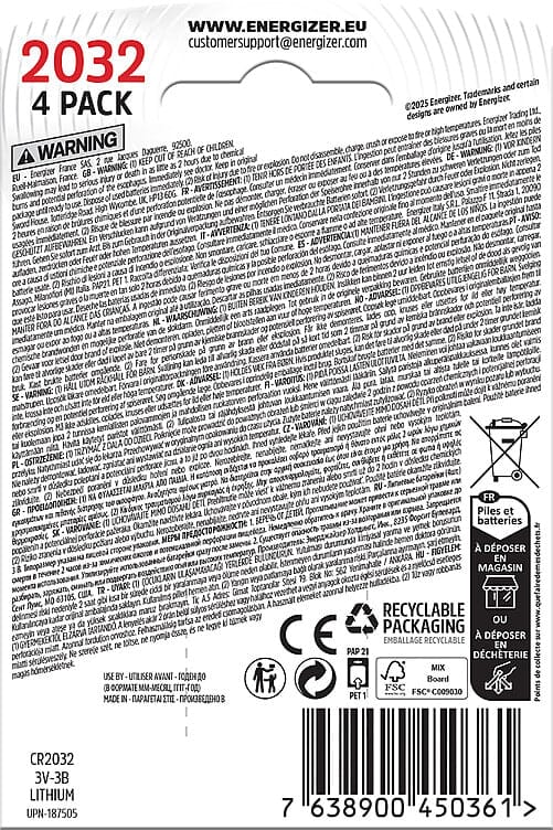 Dette 3-volts batteriet fra Energizer gir langvarig strøm til enheter som bilnøkler, små leker, pulsmålere og andre spesialenheter. Litiumteknologi gir ekstra energiøkning og tåler høyere temperaturer.