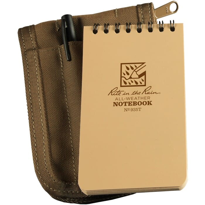 Dette settet er designet for profesjonelle og entusiaster som ofte arbeider i utfordrende utendørsmiljøer. Den 3" x 5" top-spiral notatboken har et slitesterkt Polydura-omslag og inneholder 50 ark med allværspapir som tåler regn, svette, gjørme og snø. Det medfølgende CORDURA®-omslaget beskytter notatboken ytterligere og har lommer for oppbevaring av små feltartikler. Den medfølgende allværspennen skriver jevnt på Rite in the Rain-papir, selv under våte forhold.