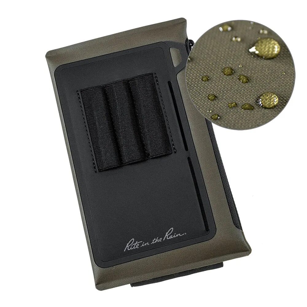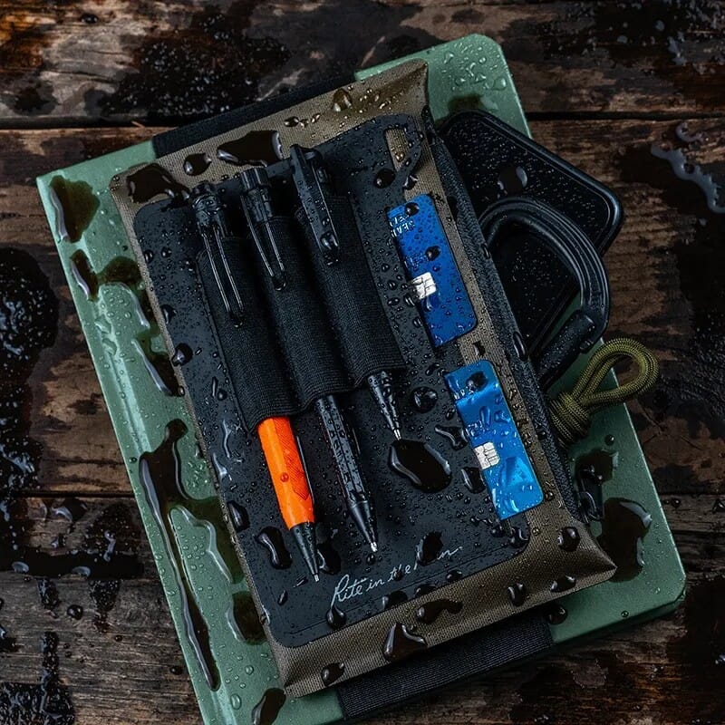 Rite in the Rain Dirtbag Pouch (P970) er en robust og værbestandig oppbevaringsløsning designet for å beskytte og organisere små gjenstander i krevende utendørsforhold. Laget av slitesterkt TPU-materiale med sveisede sømmer og ledd, er denne pungen vanntett og tåler tøffe forhold. Den festes enkelt til hardcoverskrivebøker i størrelsene 4,75" × 7,5" eller 6,75" × 8,75" ved hjelp av et justerbart og avtakbart elastisk borrelåsrem. Pungen har tre eksterne penneholdere, to kortlommer og et romslig interiørområde for oppbevaring av små elektroniske enheter, ladere eller andre nødvendigheter. Den er utstyrt med en værbestandig glidelås og en integrert festeløkke for praktisk opphenging.