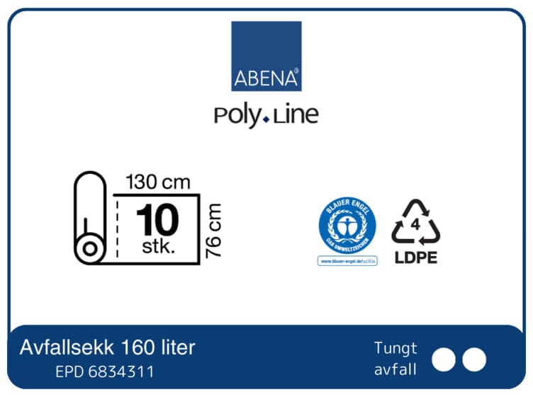 Avfallsekk produsert av resirkulert plast. Sekken er 160 l og er godt egnet til oppsamling av tungt avfall.76x130 cm, 55 my, klar, LDPE