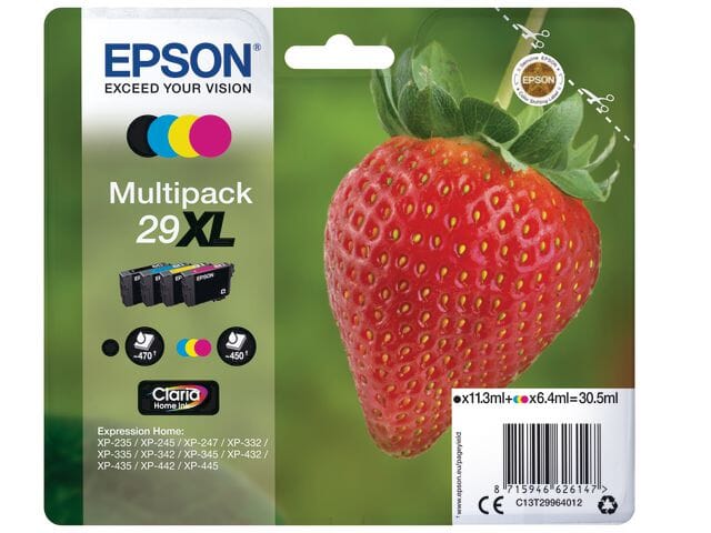 Epson 29XL blekk i flerpakning med høy kapasitet er et økonomisk alternativ for fyldige dokumenter og bilder med mørkeromskvalitet.