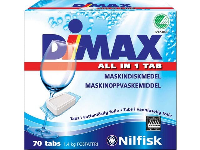 Nordex Dimax-oppvaskmaskintabletter har en konsentrert formel for å ta knekken på fettflekker og vond lukt umiddelbart. Med et belegg av oppløselig folie kan disse lavtskummende tablettene plasseres i oppvaskmaskinen uten å måtte pakkes ut. Disse tablettene er ikke-etsende for å beskytte huden. De fjerner også all lukt fra oppvasken og oppvaskmaskinen.