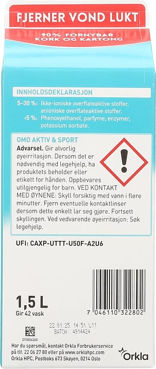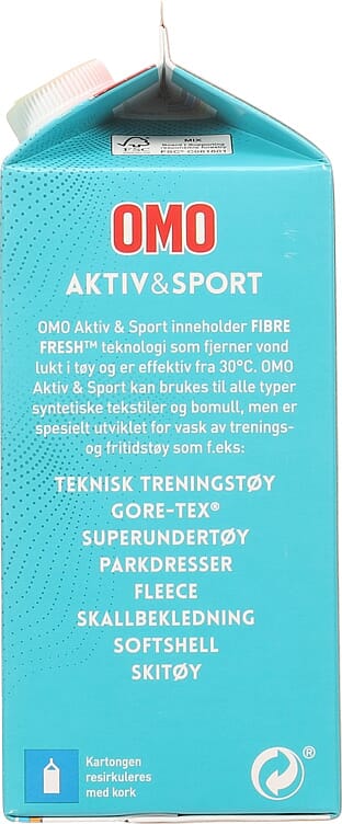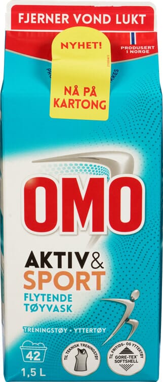 OMO Aktiv&Sport er et flytende tøyvaskemiddel spesielt utviklet for trenings- og fritidstøy.