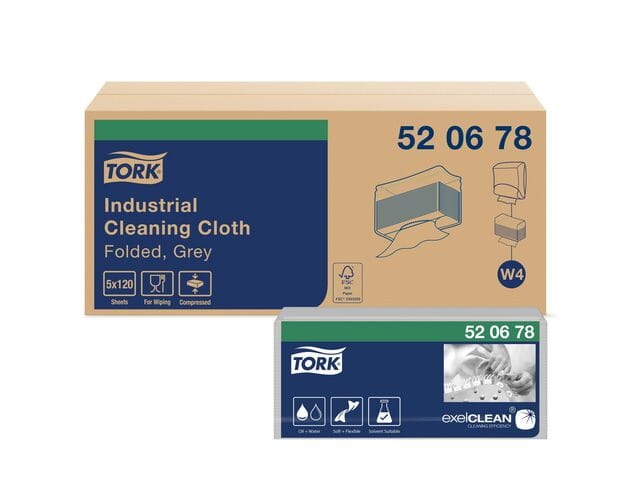 exelCLEAN®-teknologi – for et raskere, profesjonelt rengjøringsresultatSterk struktur for utmerket absorbering av olje og vannMøter dine rengjøringsbehov på grunn av egnethet med de fleste løsemidler og rengjøringsmidler«Tork Easy Handling™ for enklere bæring, åpning og håndtering av emballasje»Silikonfri klut sikrer at det ikke blir noen rester igjen på overflatenSystem W4: System for top-pak Brettet (L x B): 10,8 x 35,5 cmUtbrettet (L x B): 42,8 x 35,5 cmPregingFarge: grå