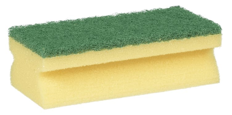 Rengjøringssvamp gul / grønn med grep. skuresvamp i nylon med slipemiddel. Brukes til grovere rengjøring.