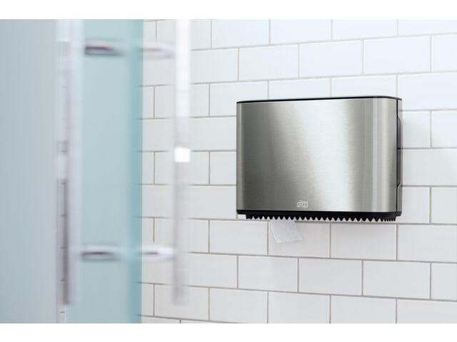 Den praktiske størrelsen og det stilige designet sørger for at toalettet gir gjester et godt inntrykk. Smart restrull holder sørger for at man ikke trenger å gå tom. I tillegg vil inspeksjonsvinduet gi oversikt over når dispenseren må fylles på. Den smarte rullebremsen gir optimal hastighet som motvirker at papir havner på gulvet.