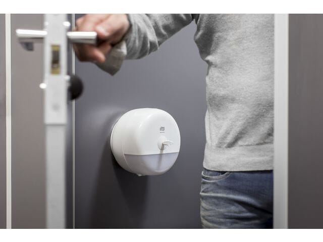 Avgir ett tørk av gangen, noe som bidrar til å redusere forbruket med opptil 40 % sammenlignet med tradisjonelle jumborulldispensere, som igjen betyr flere besøk per rull.