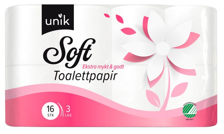 Trelags toalettpapir med en myk og behagelig overflate, fremstilt av 100 % nyfiber. Lengde per rull: 20 meter.