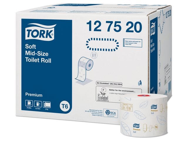 Tork Premium Compact T6 Jumbo toalettpapirrull har en ekstra myk tekstur som gir skånsom pleie og maksimal komfort.