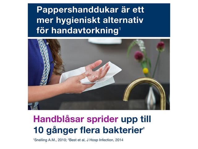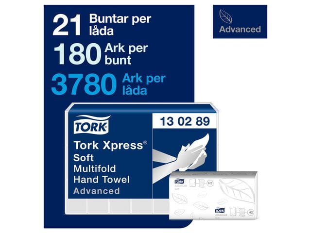 Tilby gode håndtørkemuligheter og komfort til gjestene dine med store og myke Tork Xpress® Myk Multifold Håndtørk, som er skånsomme mot hendene og har en følelse av høy kvalitet.